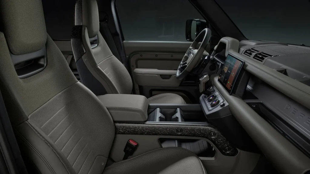 Step inside, and the Defender Octa blends rugged charm with premium luxury. The 5-seater cabin (based on the 110 body style) offers generous space, with 14-way adjustable sport seats in leather and Ultra fabric for unmatched comfort. The Khaki-Ebony theme (Edition One) with carbon-fiber accents elevates the vibe, while the 11.4-inch Pivi Pro touchscreen delivers seamless Android Auto, Apple CarPlay, and performance stats.